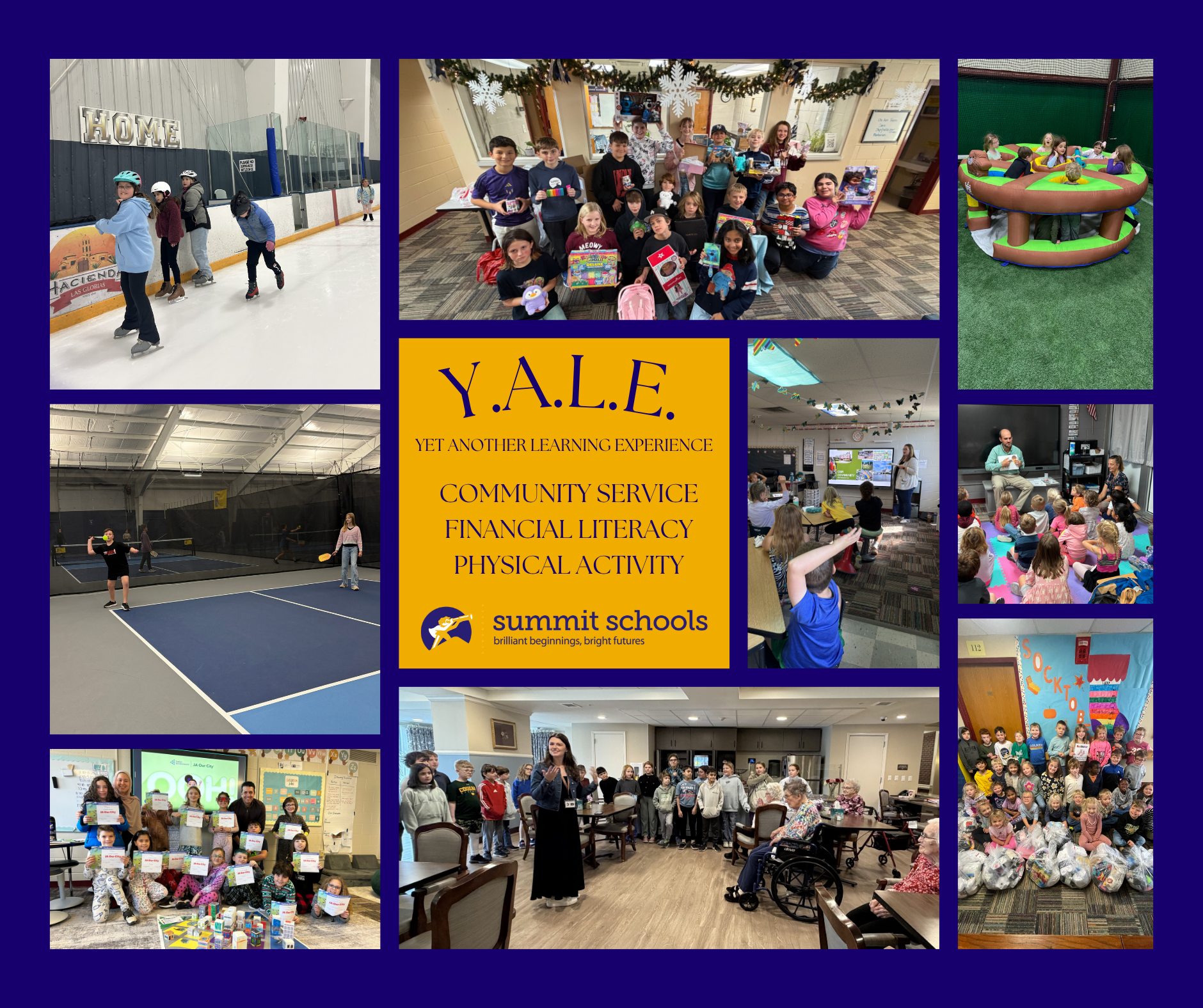 DID YOU KNOW…that every Summit student goes to Y.A.L.E.?!? No, not the university, but Yet Another Learning Experience (Y.A.L.E.)! Three components make up Summit’s longstanding Y.A.L.E. program: physical activity, community outreach/service learning, and financial literacy units facilitated through Junior Achievement volunteers. Summit graduates and former students often mention Y.A.L.E. as a favorite Summit memory or experience.